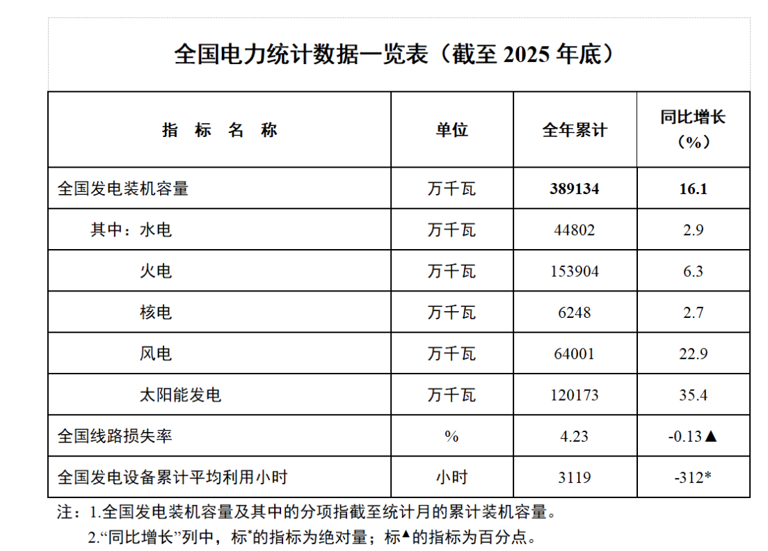近日,国家能源局正式发布了2025年度全国电力统计数据。