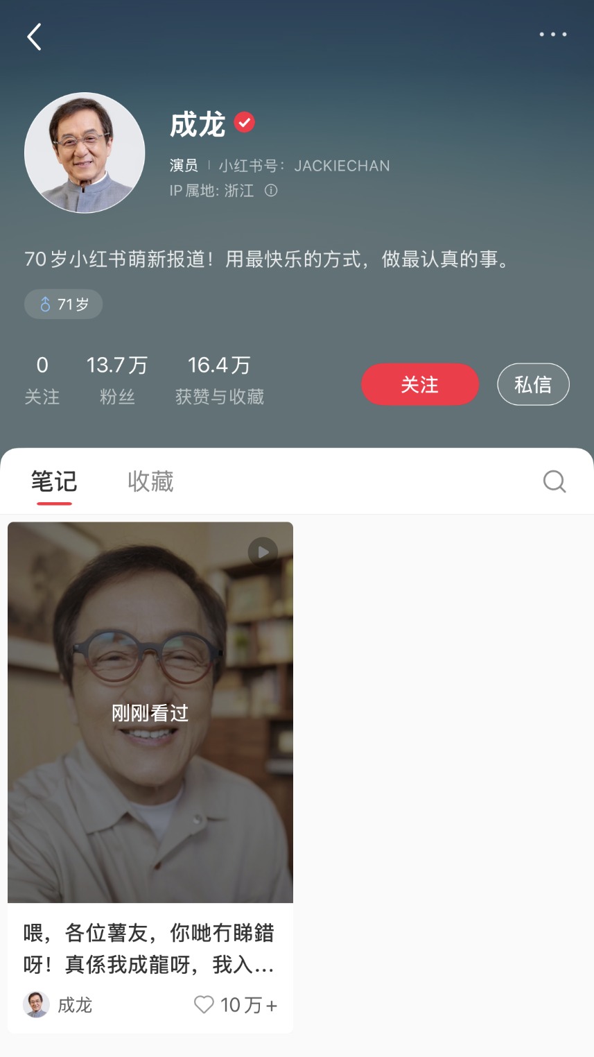 成龙开通小红书账号