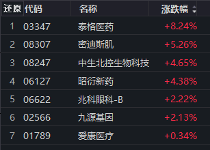 生命科学工具板块持续活跃,泰格医药涨超8%,密迪斯肌、中生北控生物科技、昭衍新药等跟涨。