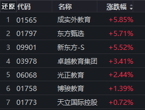 K12教育板块尾盘回升,成实外教育、东方甄选、新东方-S涨超5%。
