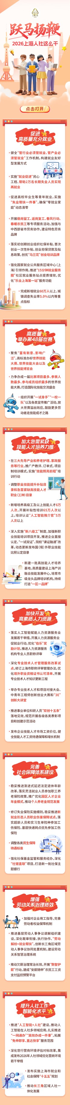 展望2026年,上海人社系统将坚持稳中求进,以“技能提升年”为主线,重点推进以下工作: