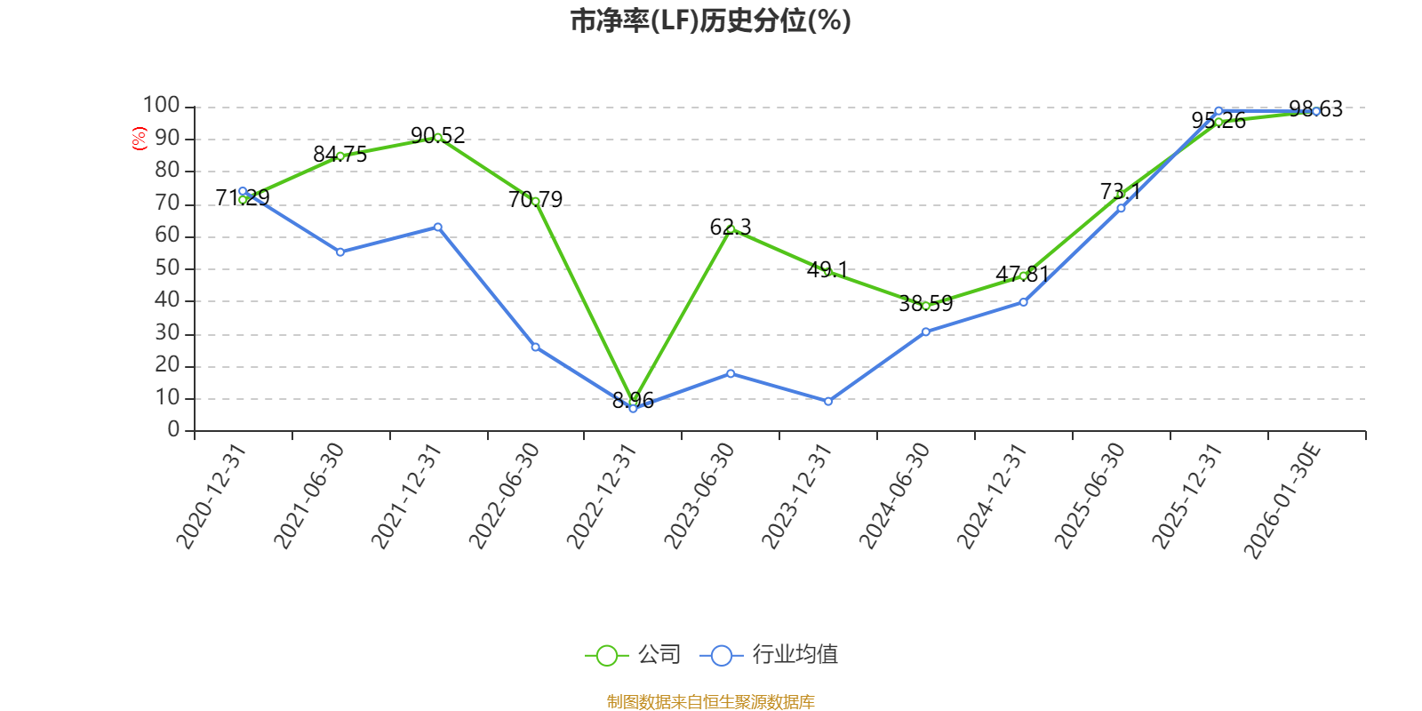 市盈率、市净率为负时,不显示当期分位数,会导致折线图中断。