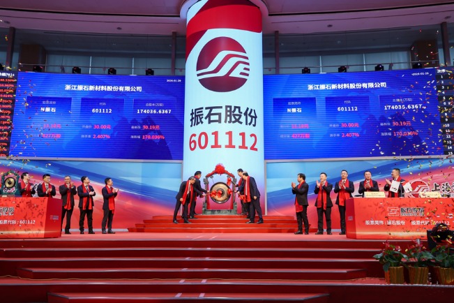 1月29日,近两年沪市主板发行股票数量第二多的新股——浙江振石新材料股份有限公司(股票简称:振石股份,股票代码:601112)正式登陆沪市主板,上市首日,收盘价涨超120%。