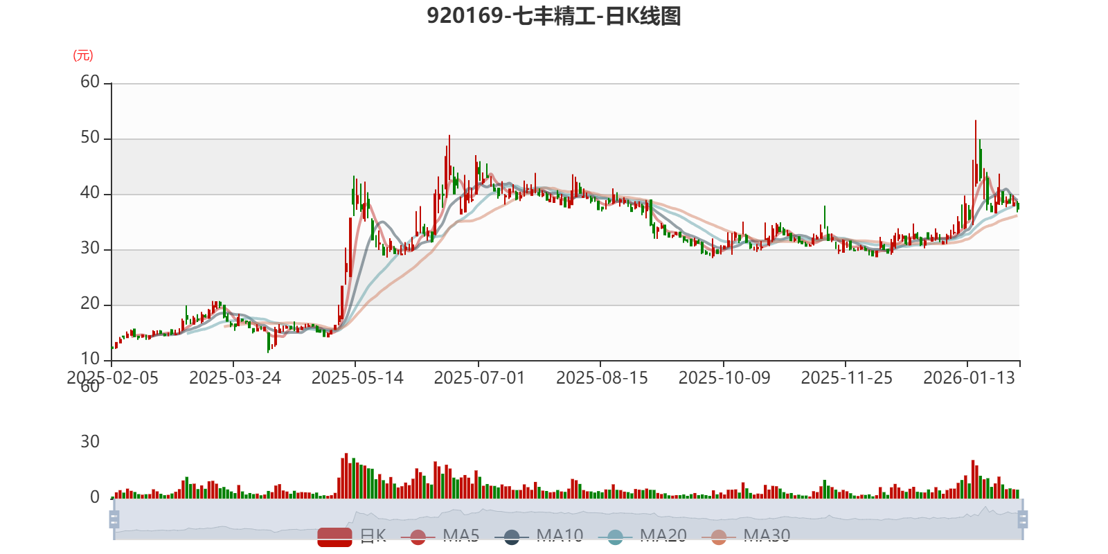 中证智能财讯七丰精工(920169)1月30日晚间披露2025年度业绩预告,预计2025年归母净利润2600万元至3200万元,同比增长86.52%-129.56%。以1月30日收盘价计算,七丰精工目前市盈率(TTM)约为94.18倍-115.92倍,市净率(LF)约9.08倍,市销率(TTM)约14.77倍。