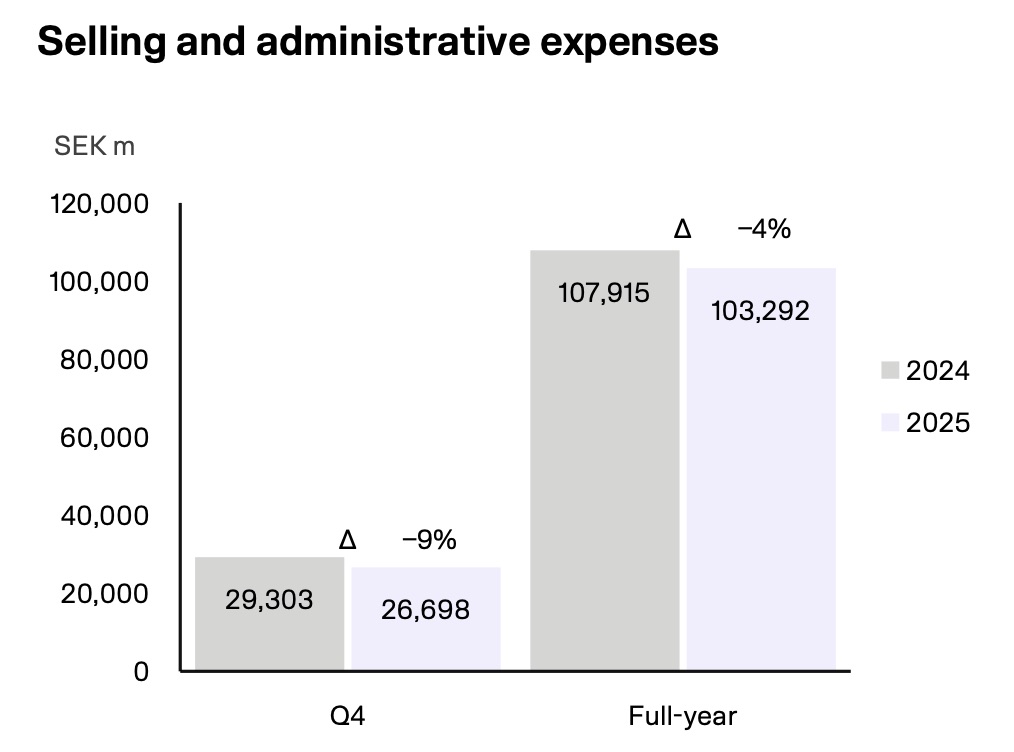 最新财报显示,2025财年集团营业利润增长6.29%至183.95亿瑞典克朗,营业利润率由上一财年的7.4%提升至8.1%。第四季度表现尤为突出,营业利润同比增长38%,营业利润率升至10.7%,较去年同期的7.4%显著改善。