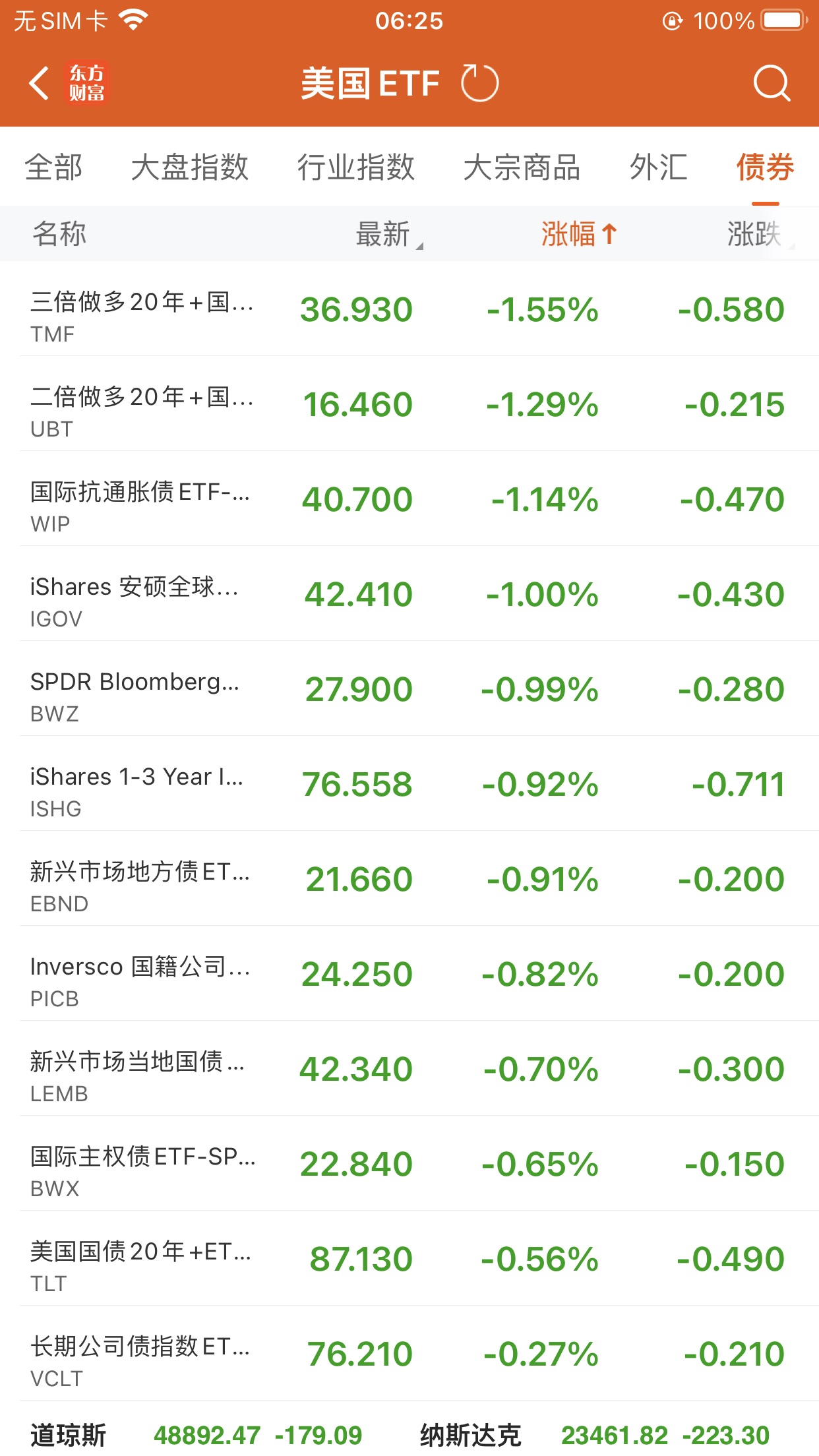 三倍做多20年期以上国债ETF-Direxion(TMF.US) 跌1.55%,成交额2.7亿美元。