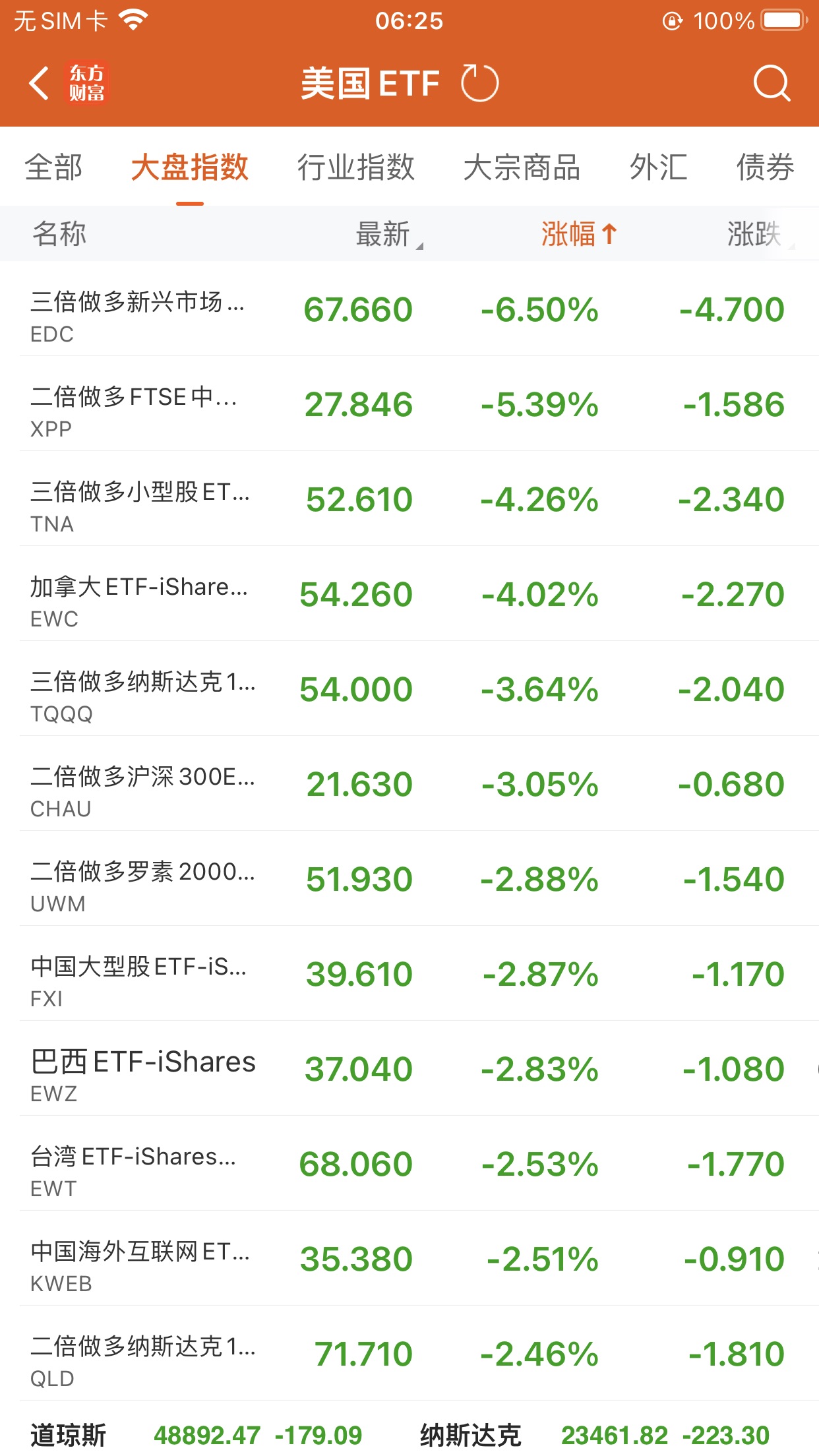 三倍做多新兴市场ETF-Direxion(EDC.US) 跌6.50%,成交额2828万美元。