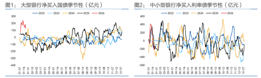尽管“开门红”阶段的购债惯性仍将延续,但中小银行的配置目标已转向锁定票息收益。开年以来,中小银行配置行为明显趋于审慎。一方面,在利率中枢抬升、市场波动加大的背景下,资本利得空间收窄,交易账户久期已出现主动压缩;另一方面,监管指标优化释放了配置盘对部分超长久期利率债的需求。部分中小银行正通过直接参与债券市场,提高组合收益透明度,减少对外部管理人的依赖,这也反映出银行对收益稳定性和风险可控性的更高要求。