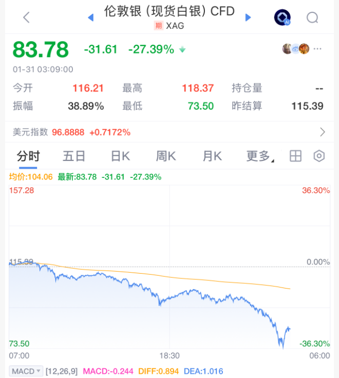 此次大幅下挫最初由有关沃什获提名的报道触发,但在北京凌晨时间进一步加速——此前涌入贵金属的投资者争相获利了结。美元指数飙升也令金银承压:美元走强使海外投资者购买黄金和白银的成本更高,同时也削弱了“贵金属将取代美元成为全球储备货币”的理论。