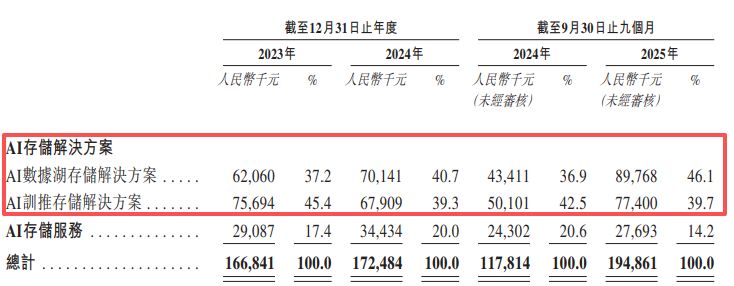 2023年、2024年和2025年前三季度,星辰天合的收入主要来自AI存储解决方案,收入占比分别为82.6%、80%和85.8%。
