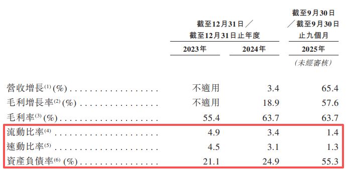 流动性方面,截至2025年三季度末,星辰天合的流动比率已从2023年底的4.9倍大幅降至1.4倍,速动比率也同步下滑。在自身造血能力尚未完全恢复的情况下,公司对外部融资的依赖度较高。招股书还显示,截至2025年三季度末,公司账面现金及现金等价物已从2023年初的约4.2亿元缩水至1.05亿元。