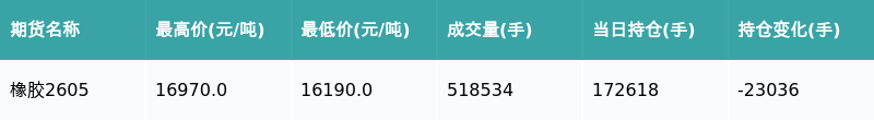南财智讯1月30日电,盘后期货数据显示,上海期货交易所的橡胶主力合约收跌1.09%,收盘报16360.0元/吨,日内资金流出7.95亿元。其他相关指标见下表: