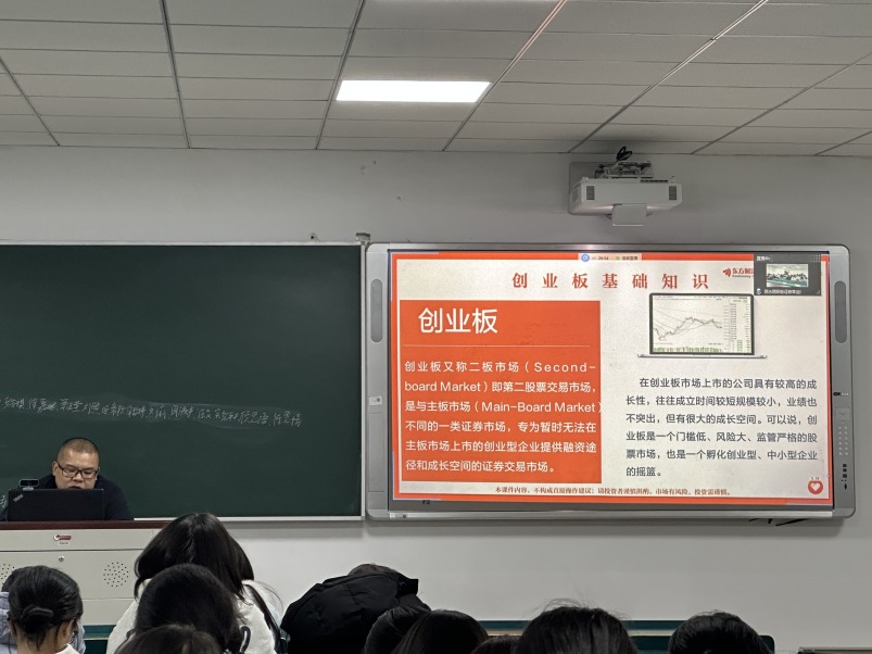 此外营业部讲师还向同学们普及金融市场知识,解读了创业板的基础概念,包括其设立初衷、服务定位与核心功能,清晰阐释了创业板 “聚焦创新、创造、创意,服务成长型创新创业企业” 的核心属性,让同学们直观理解创业板支持实体经济创新发展的作用,快速夯实基础认知。