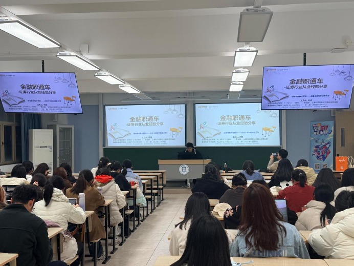 为帮助金融学院学生明确职业方向、提升金融素养,增强对资本市场的认知与规划能力,2025年12月11日,东方财富证券投教基地联合上海对外经贸大学,共同举办了以“金融职通车-证券行业从业经验分享”为主题的投资者教育进校园活动,本次活动共吸引50名高校学生参与。