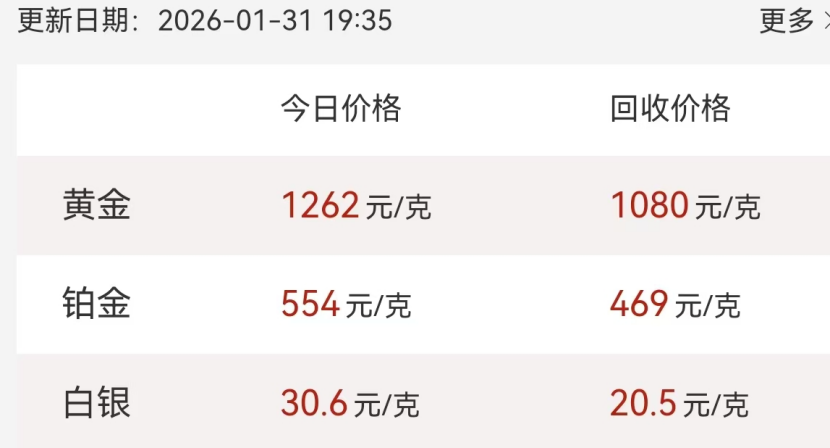 而在深圳水贝市场,金饰克价最高曾一度接近1400元,31日的报价跌至1262元左右。