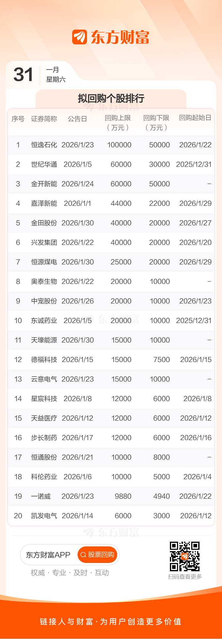 1月有52家公司宣布回购计划,按拟回购金额上限统计,计划回购金额54.59亿元。其中恒逸石化拟回购金额上限最高,为10.00亿元。