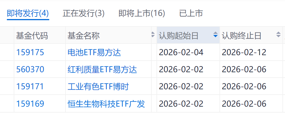 根据Go-Goal ETF数据,下周即将有4只ETF发行。