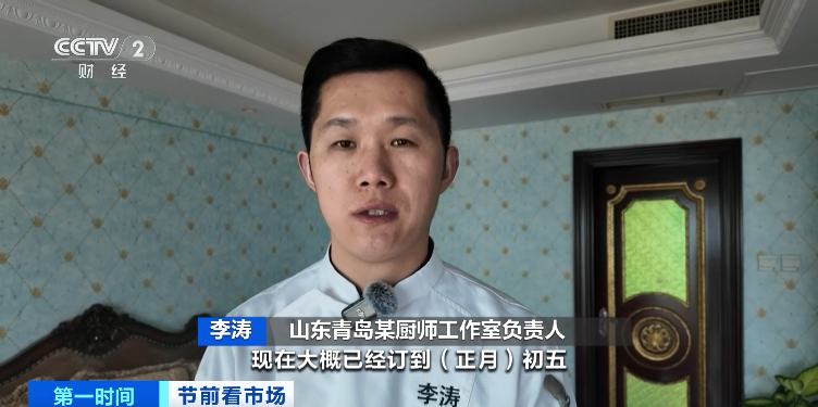 山东青岛某厨师工作室负责人李涛:订单已经排到正月初五了,订单量同比增长了20%到25%左右。