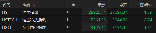 上证报中国证券网讯 2月2日9时50分,港股恒生科技指数跌幅扩大至超2%。