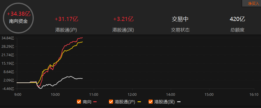 南向资金净买入超30亿港元