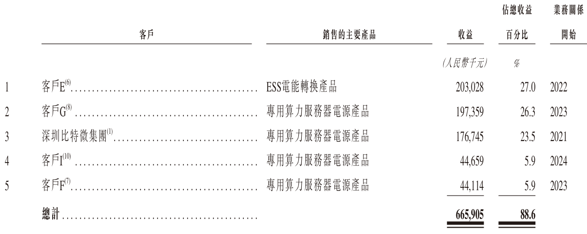 公司核心业务为高性能算力服务器电源,招股书显示,这种市场地位的建立,与深圳比特微集团的深度合作密切相关。比特微既是Pre-IPO重要股东,又是长期最大客户。