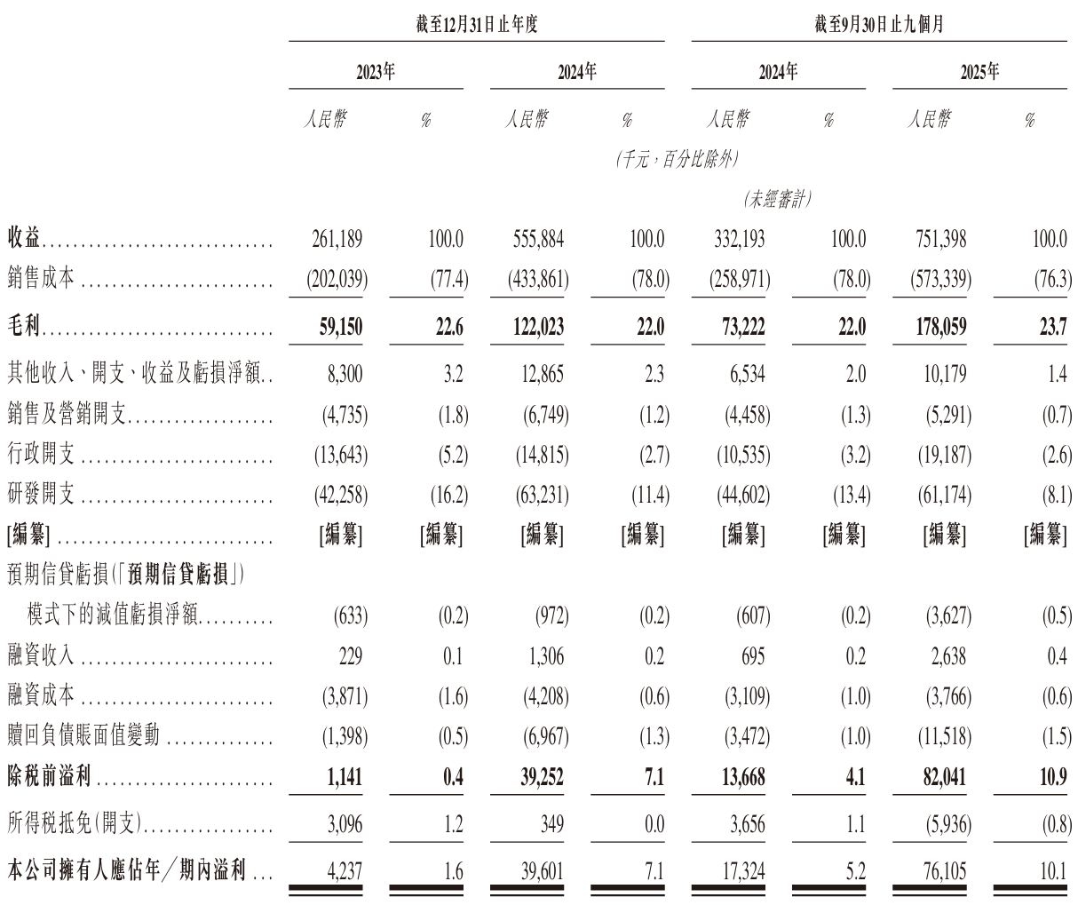 2023年至2025年前三季度(报告期),铂科电子营收从2.61亿元快速攀升至7.51亿元,净利润从424万元增至7611万元。公司定位高性能算力服务器电源供应商,按2024年收益计在中国内地市场份额18.9%,位居第一,全球份额8.9%,位居第四。