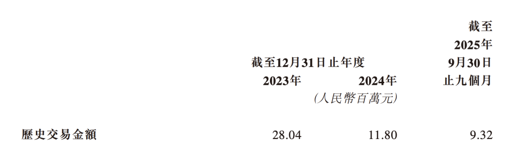 2023年、2024年及2025年前三季度交易额分别为2804万元、1180万元及932万元,占同期采购总额比例分别为2.3%、1.4%及1.4%。