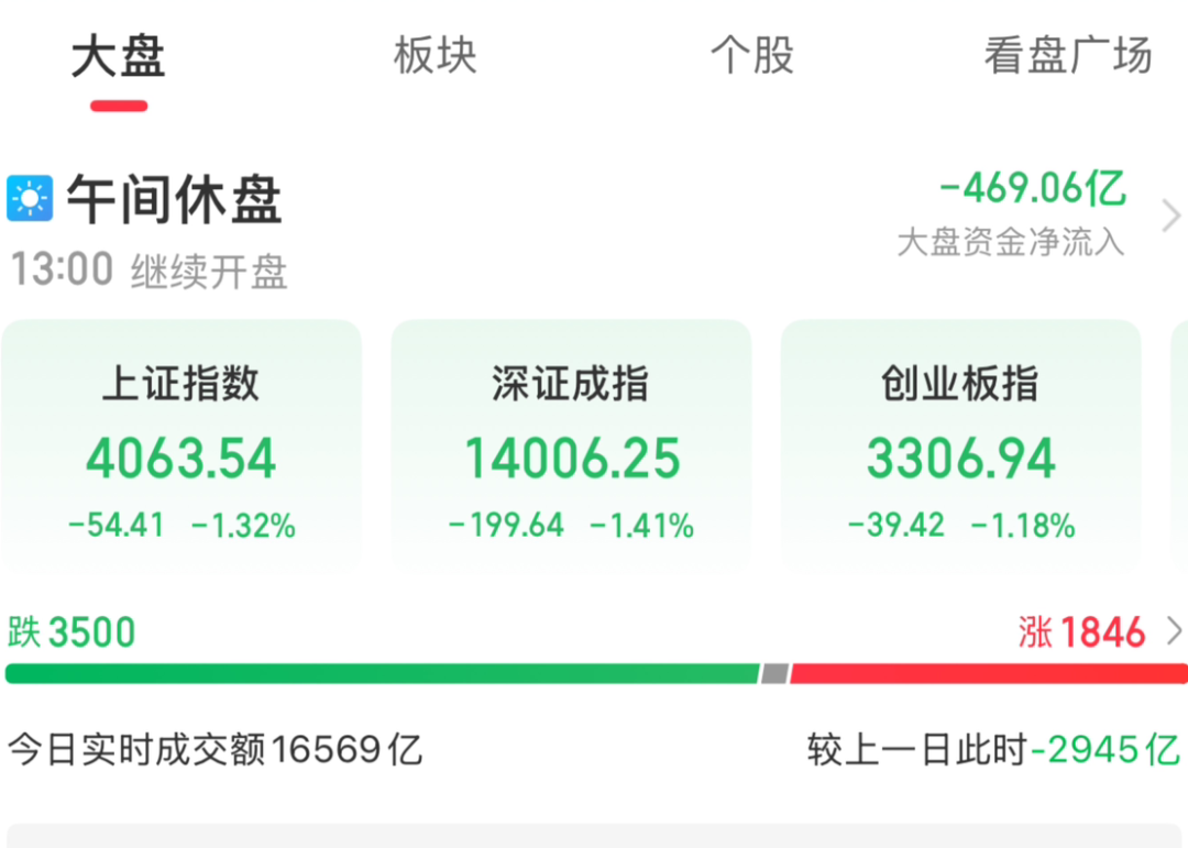 2月2日早盘,A股低开震荡,截至午间收盘,沪指跌1.32%,深成指跌1.41%,创业板指跌1.18%,北证50指数跌1.12%。市场成交呈萎缩趋势,全市场3500只个股下跌。