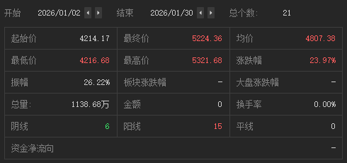 此前,2026年1月份,21个交易日内韩国KOSPI指数累计上涨24%,最高达5321.68点,创历史新高。
