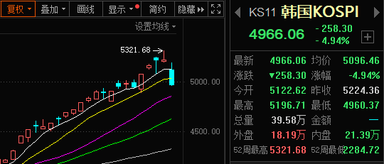 失守5000点!韩国KOSPI指数跌近5%