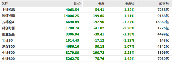 A股三大指数跌超1%,有色金属、油气方向领跌