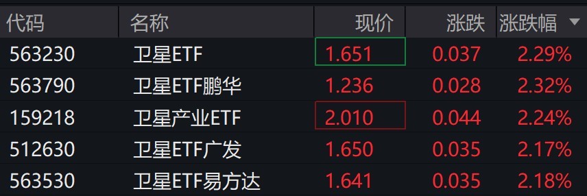 卫星概念股早盘走强,中国卫通、新雷能涨超3%,航天电子涨超2%。