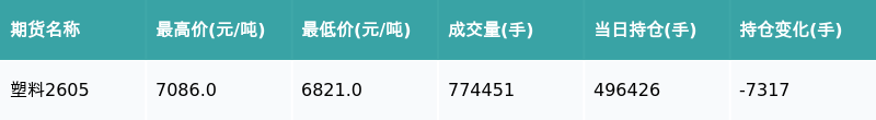 南财智讯2月2日电,盘后期货数据显示,大连商品交易所的塑料主力合约收跌2.19%,收盘报6878.0元/吨,日内资金流出8318.48万元。其他相关指标见下表: