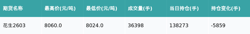 南财智讯2月2日电,盘后期货数据显示,郑州商品交易所的花生主力合约收跌0.62%,收盘报8030.0元/吨,日内资金流出3596.02万元。其他相关指标见下表: