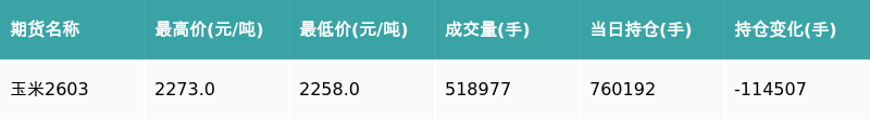 南财智讯2月2日电,盘后期货数据显示,大连商品交易所的玉米主力合约收跌0.7%,收盘报2261.0元/吨,日内资金流出3.75亿元。其他相关指标见下表: