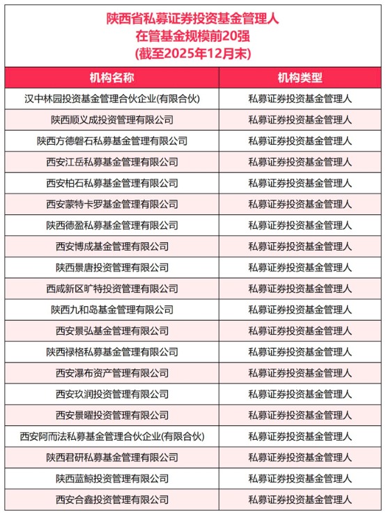 近日,陕西省证券投资基金业协会在“回望征程聚智启新”跨年学术演讲暨迎新春座谈会上发布了陕西私募证券投资基金管理人20强名单。