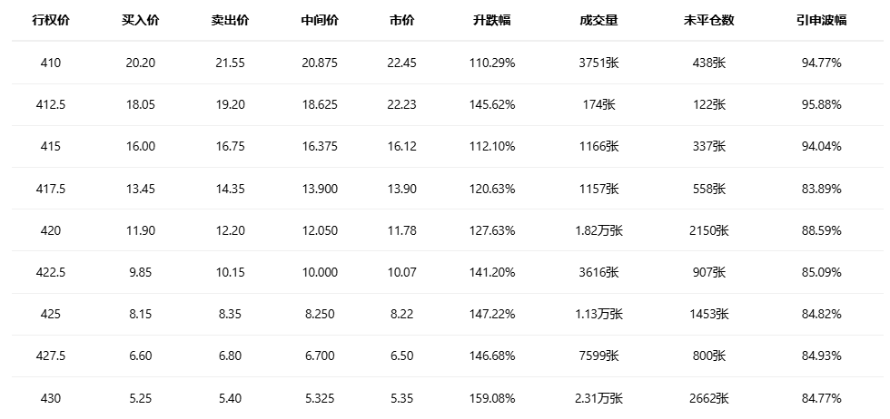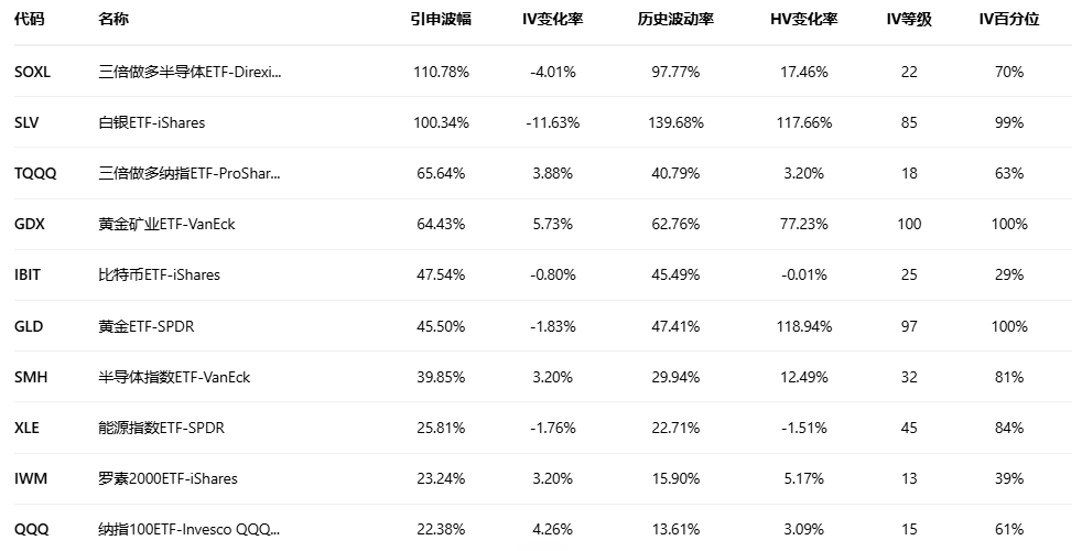 引申波幅排行榜(标的市值>10亿美元,且期权成交量>10万)