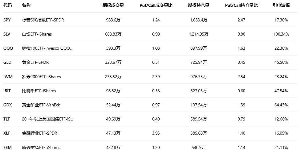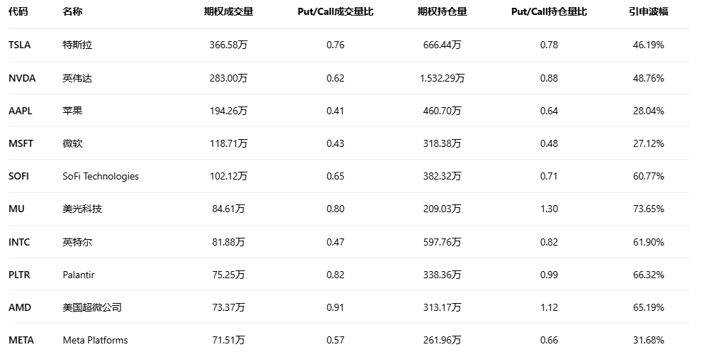看跌/看涨持仓量比最高是美光科技,达到1.30。三星电子预期2026年将是存储行业黄金时代,HBM需求超供给推动美光等存储芯片股价上涨,全球三大存储巨头联手限售防止客户囤货。
