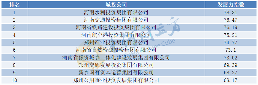 2025年河南城投平台发展力指数TOP10