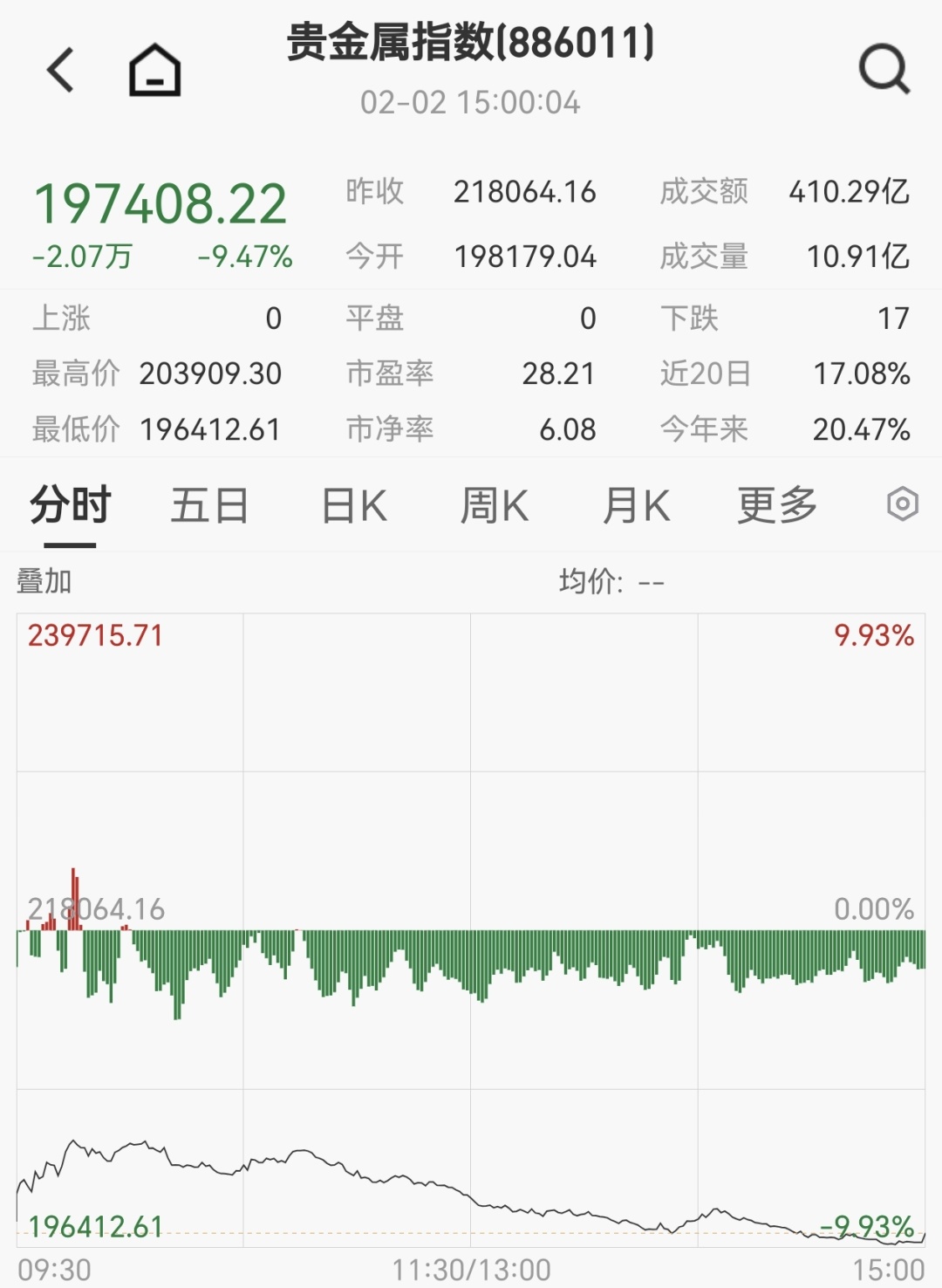受国际金价、银价近日史诗级暴跌影响,黄金、有色金属板块重挫,四川黄金、中金黄金、赤峰黄金、西部黄金等10余股跌停。化工、石油天然气等资源周期股同样大幅回调,中曼石油、准油股份、鲁西化工等大面积跌停。