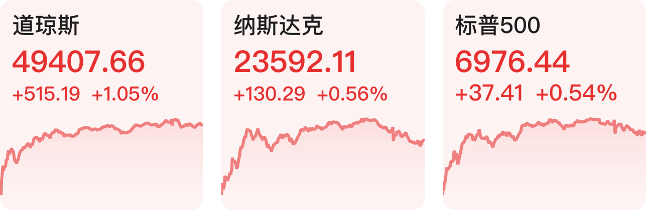 美股三大指数集体收涨,道指涨1.05%,纳指涨0.56%,标普500指数涨0.54%,热门科技股涨跌不一,英特尔涨超5%,苹果涨超4%,谷歌涨超1%创历史新高,英伟达跌近3%,特斯拉跌2%,微软、Meta跌超1%。存储概念股大涨,闪迪涨超15%,西部数据涨近8%,美光科技涨超5%。热门中概股多数下跌,纳斯达克中国金龙指数收跌0.65%,小鹏汽车跌超8%,百度、蔚来跌超3%,哔哩哔哩跌超2%,拼多多、新东方涨超2%。