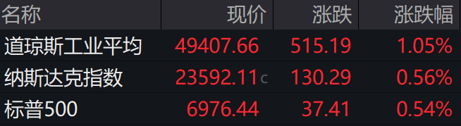 当地时间周一,美股低开高走,标普500指数逼近7000点。截至收盘,道指涨1.05%,纳指涨0.56%,标普500指数涨0.54%。