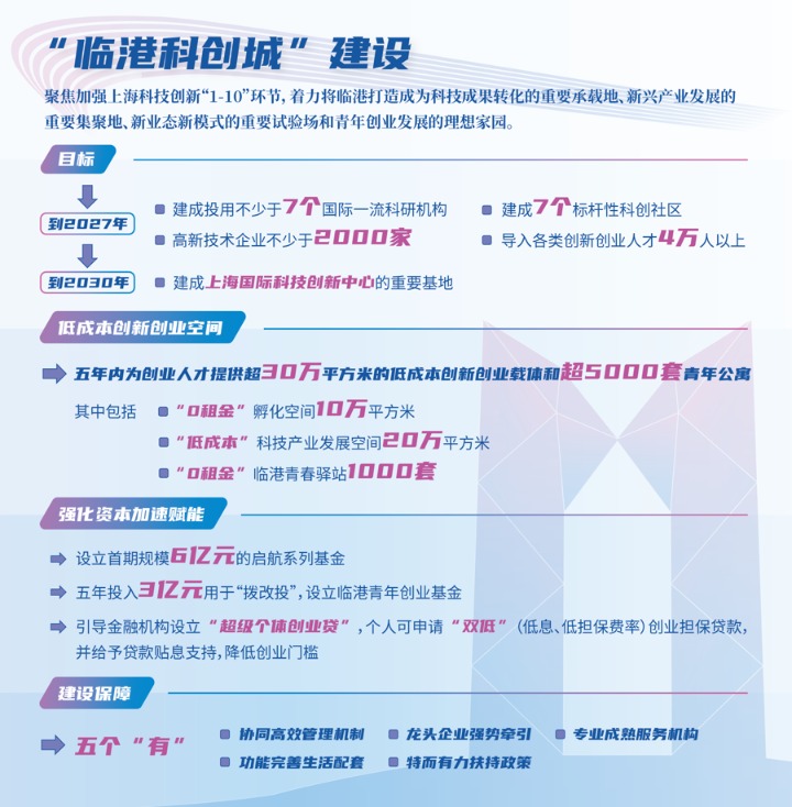 近期,临港新片区宣布正式启动“临港科创城”建设,出台《上海市“临港科创城”建设方案》,推出科创社区建设、创业启航基金等“一揽子”创新举措,通过整合政府资源与市场力量,合力构建“成本更低、生态更优、陪伴更暖、成功率更高”的国际一流科创城。