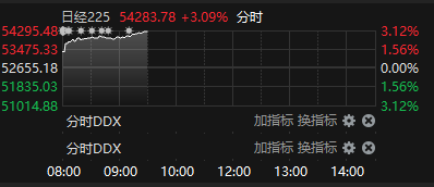 上证报中国证券网讯 2月3日,日经225指数高开高走,截至9时29分,指数涨超3%。
