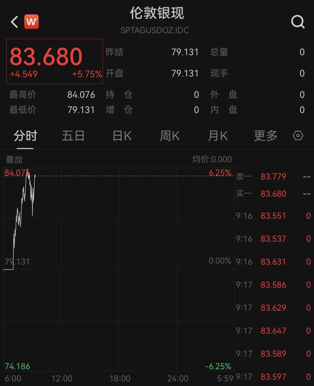 截至发稿,现货白银涨近6%,COMEX白银涨近8%。