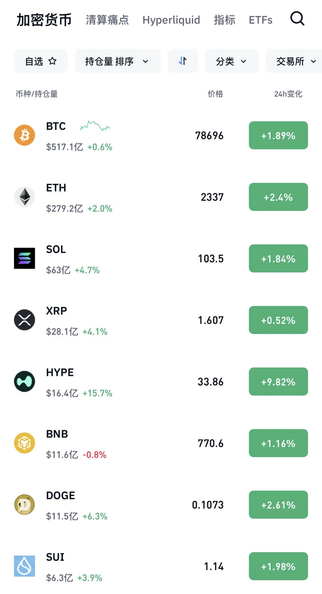 虚拟货币市场全线大涨,截至发稿,比特币涨近2%,以太坊、狗狗币涨超2%,HYPE涨近10%。