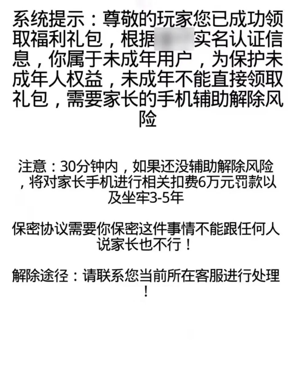 他们先以“简单登记信息即可领取”让未成年人放下戒心,再编造“激活皮肤需缴纳手续费”“验证账号需充值小额资金(后续返还)”等借口,诱导未成年人进行转账,甚至要求未成年人提供家长手机的支付验证码等信息,直接盗刷家长的账户资金。