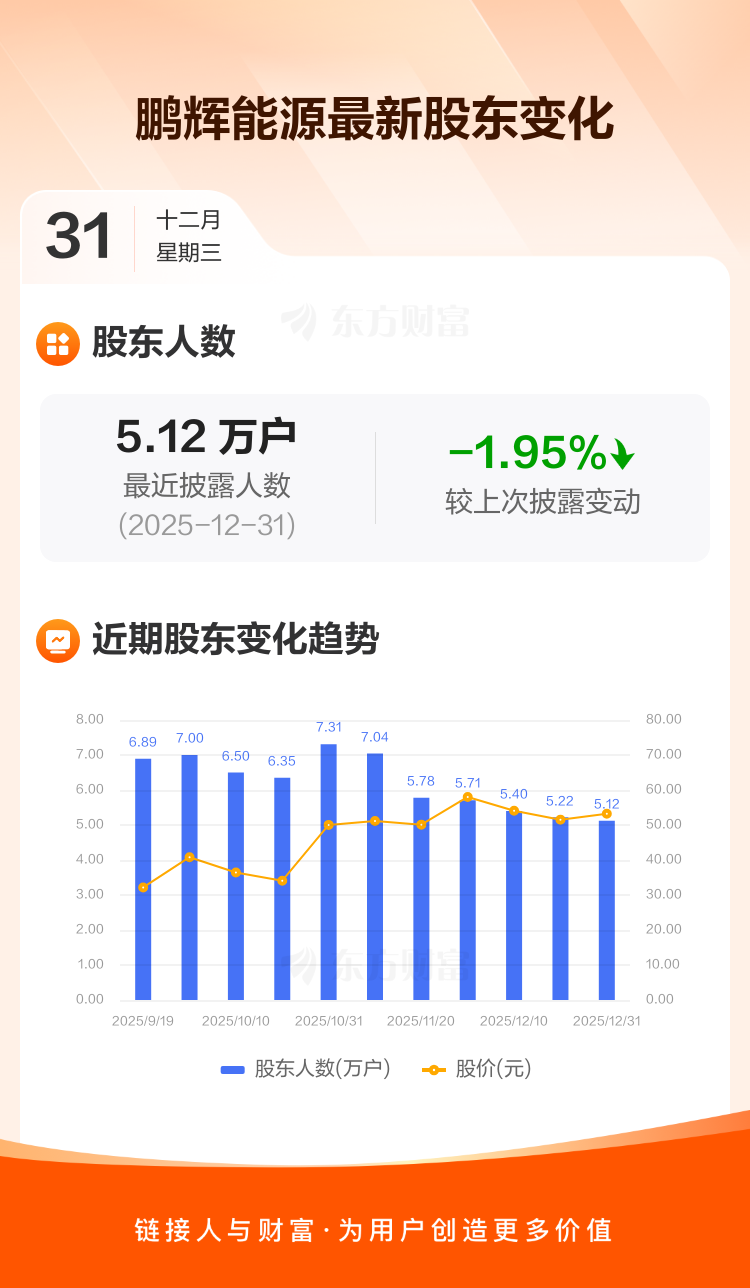 鹏辉能源:截至12月31日最新股东户数5.12万户,较上期减少1.95%