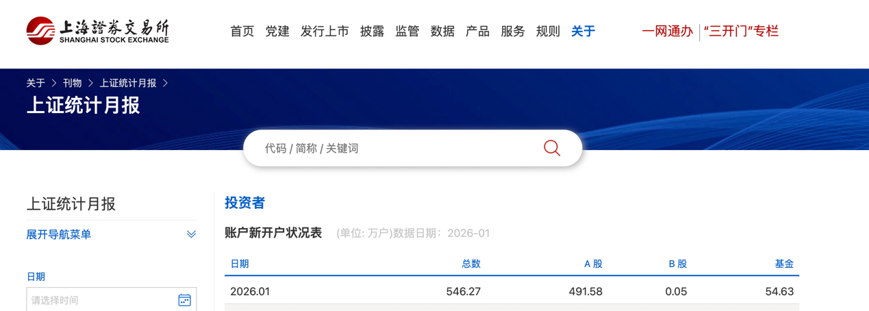 2026年1月A股新开户数491.58万户 同比增长213%