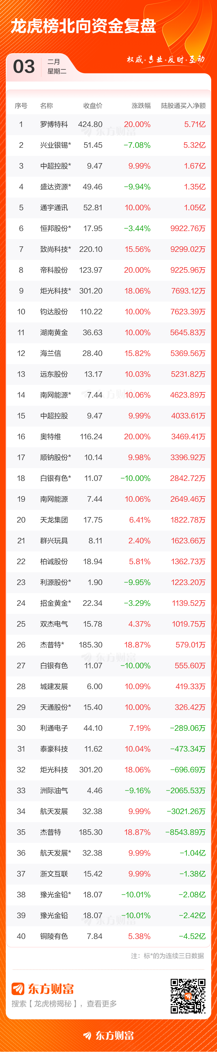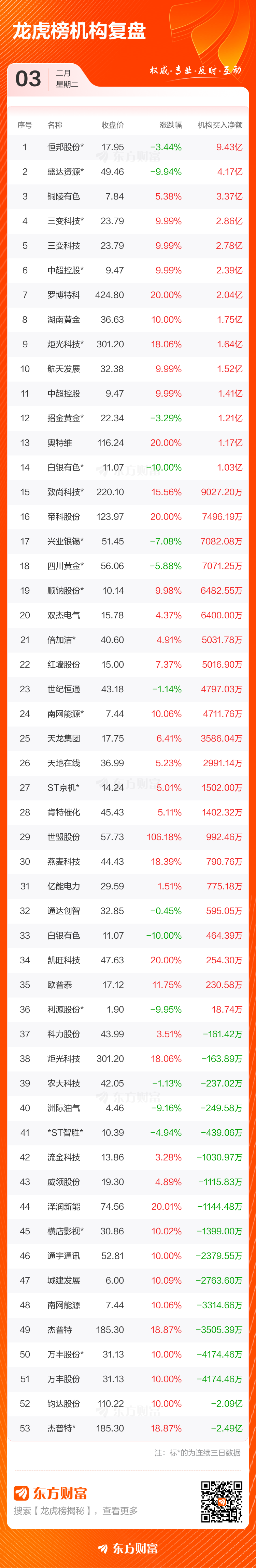 2月3日龙虎榜复盘:航天发展净买额居首